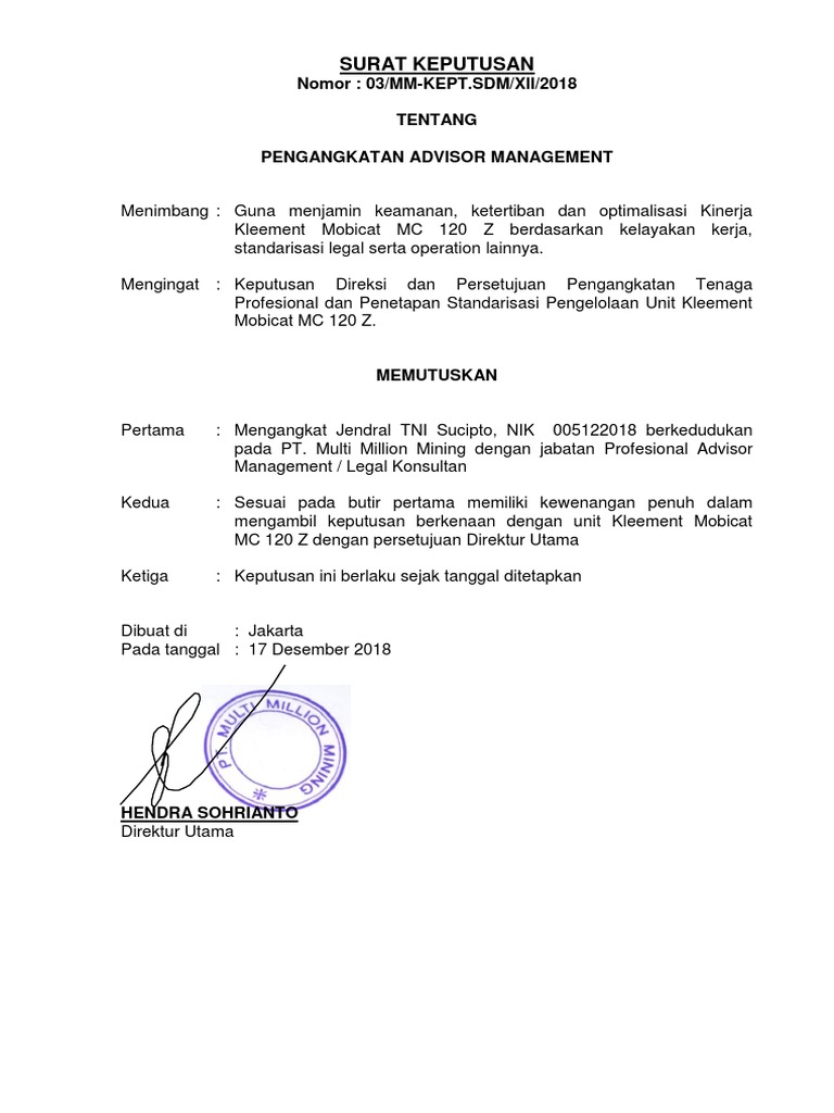 10 Contoh Surat Keputusan Pengangkatan Karyawan Dll Lengkap from i1.wp.com Contoh yang berikutnya adalah surat pengangkatan karyawan yang ditujukan kepada sesorang untuk menduduki sebagai jabatan marketing pemasaran dalam sebauh cv maupun perusahaan yang bernama cv. Demikian surat pengangkatan ini dibuat, semoga amanah yang telah diberikan dapat dijalankan sebagaimana mestinya. Bahwa dalam rangka pelaksanaan kegiatan usaha pt. Contoh surat keputusan pengangkatan direktur. Contoh surat keputusan pemberian cuti tahunan. 2009 ketua (tanda tangan & nama terang) pembina (tanda tangan & nama terang) mengetahui, Mengapa anda membuat surat pengangkatan karyawan? May 16, 2018 · download surat.